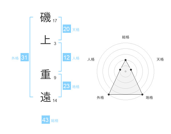 磯上 重遠さんを姓名の画数から五運を鑑定