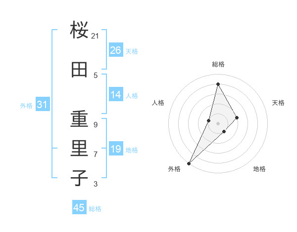 桜田 重里子さんを姓名の画数から五運を鑑定