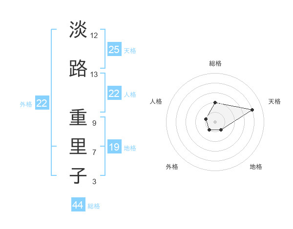淡路 重里子さんを姓名の画数から五運を鑑定