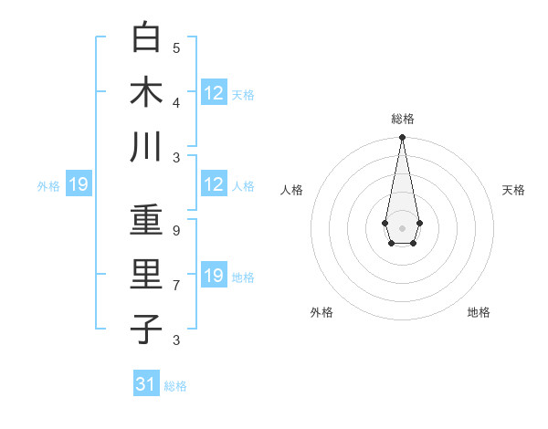 白木川 重里子さんを姓名の画数から五運を鑑定