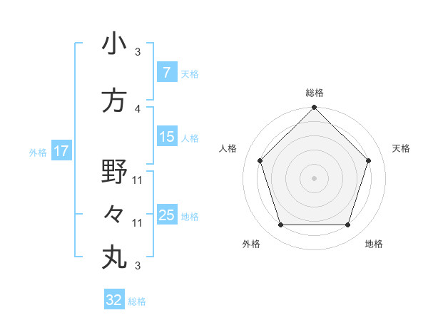 小方 野々丸さんを姓名の画数から五運を鑑定