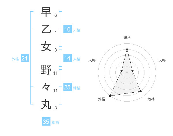 早乙女 野々丸さんの総格は35画の4点!