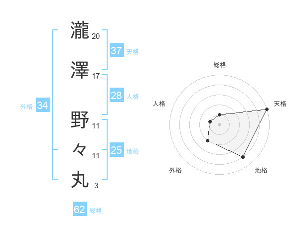 瀧澤 野々丸さんを姓名の画数から五運を鑑定