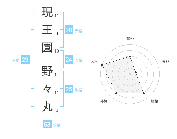 現王園 野々丸さんを姓名の画数から五運を鑑定
