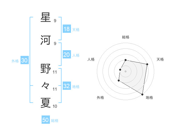 星河 野々夏さんの総格は50画の2点!