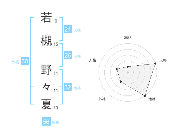 若槻 野々夏さんを姓名の画数から五運を鑑定