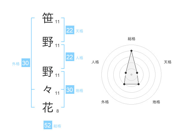 笹野 野々花さんの総格は52画の4点