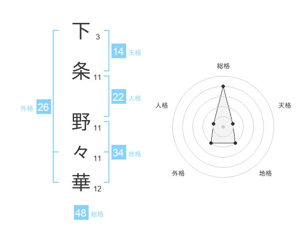 下条 野々華さんの総格は48画の4点!