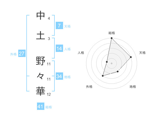 中土 野々華さんの総格は41画の5点!