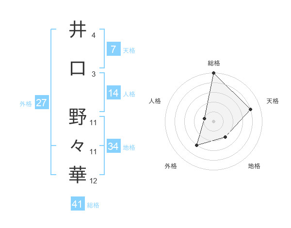 井口 野々華さんの総格は41画の5点!