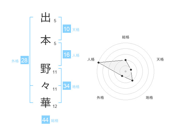 出本 野々華さんの人格は16画の5点!