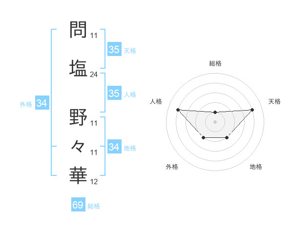 問塩 野々華さんを姓名の画数から五運を鑑定