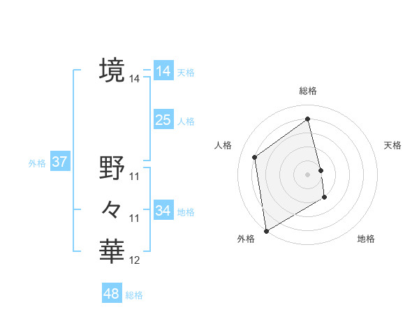 境 野々華さんの総格は48画の4点!