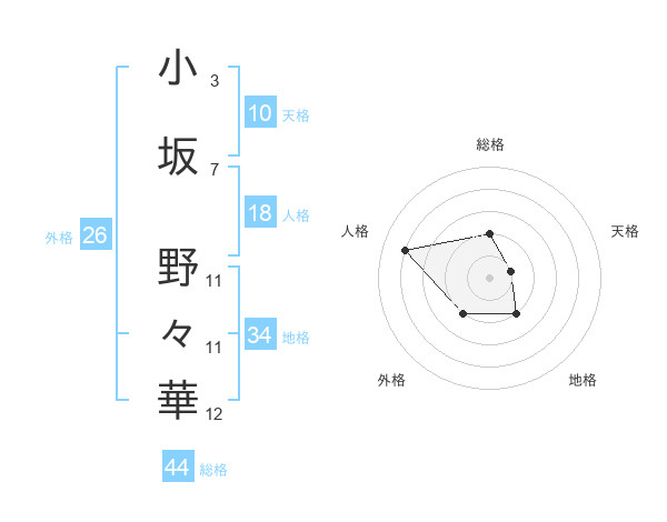 小坂 野々華さんの総格は44画の2点!