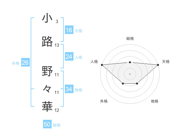 小路 野々華さんの総格は50画の2点!