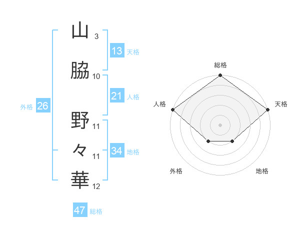山脇 野々華さんを姓名の画数から五運を鑑定