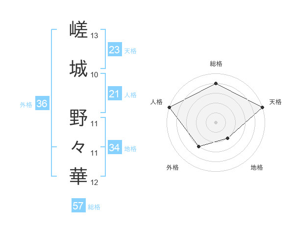 嵯城 野々華さんの天格は23画の5点!