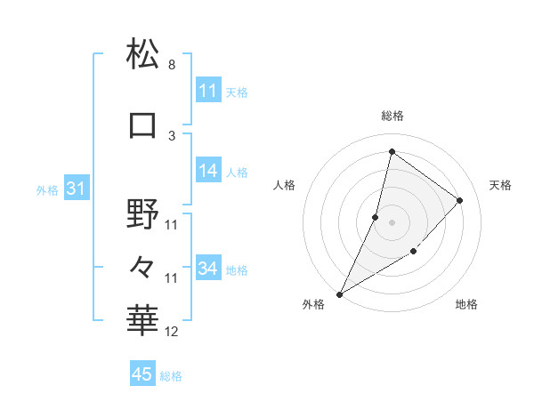 松口 野々華さんの総格は45画の4点!
