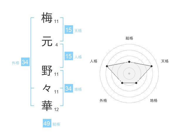 梅元 野々華さんの総格は49画の2点!