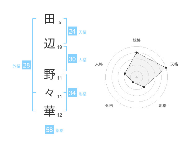 田辺 野々華さんを姓名の画数から五運を鑑定