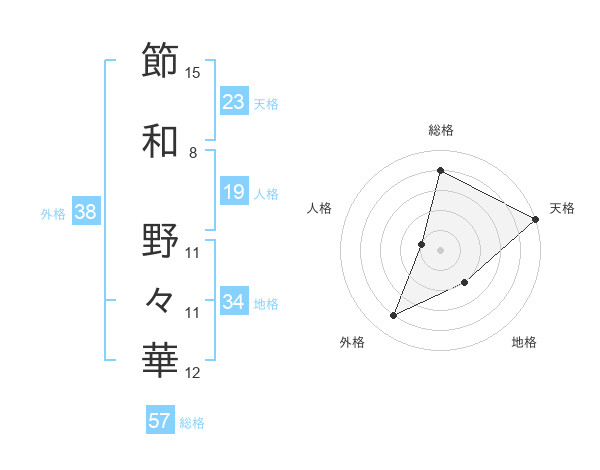 節和 野々華さんの天格は23画の5点!