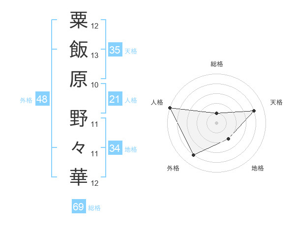 粟飯原 野々華さんを姓名の画数から五運を鑑定