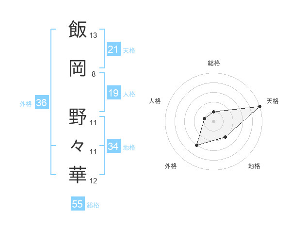 飯岡 野々華さんを姓名の画数から五運を鑑定