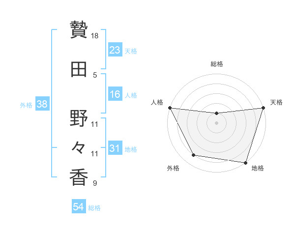 贄田 野々香さんの天格は23画の5点!