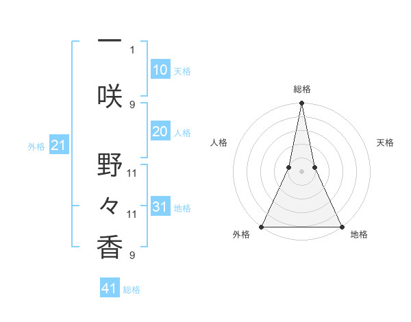 一咲 野々香さんの総格は41画の5点!