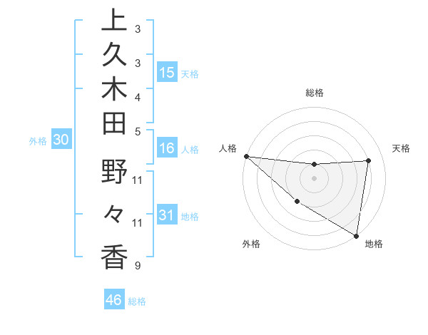 上久木田 野々香さんを姓名の画数から五運を鑑定