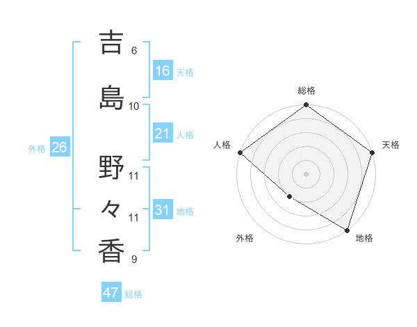 吉島 野々香さんを姓名の画数から五運を鑑定