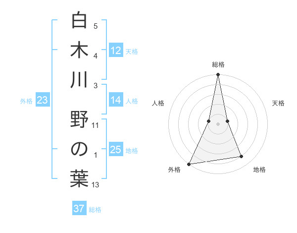 白木川 野の葉さんを姓名の画数から五運を鑑定