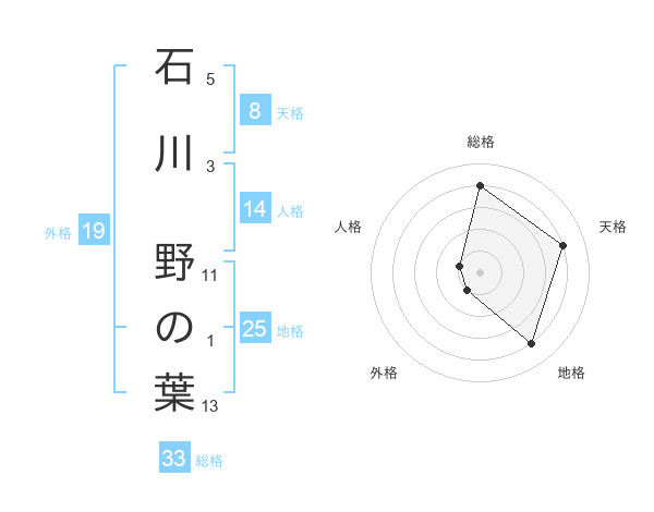 石川 野の葉さんを姓名の画数から五運を鑑定