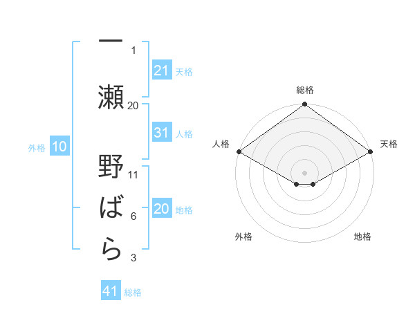 一瀬 野ばらさんを姓名の画数から五運を鑑定