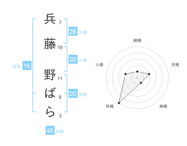 兵藤 野ばらさんの総格は46画の1点!