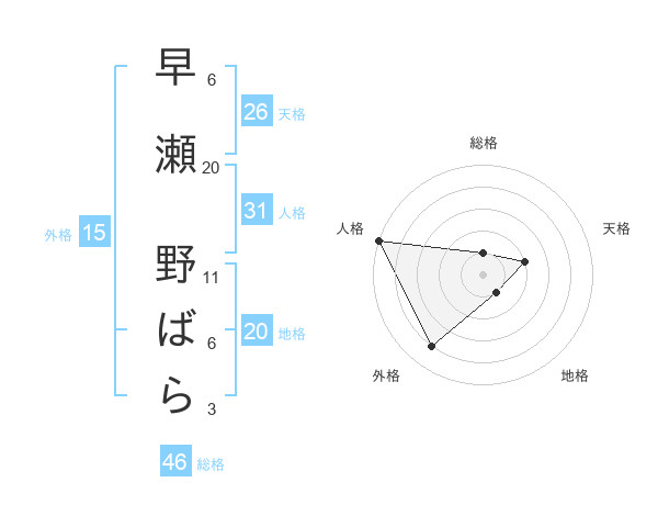 早瀬 野ばらさんを姓名の画数から五運を鑑定