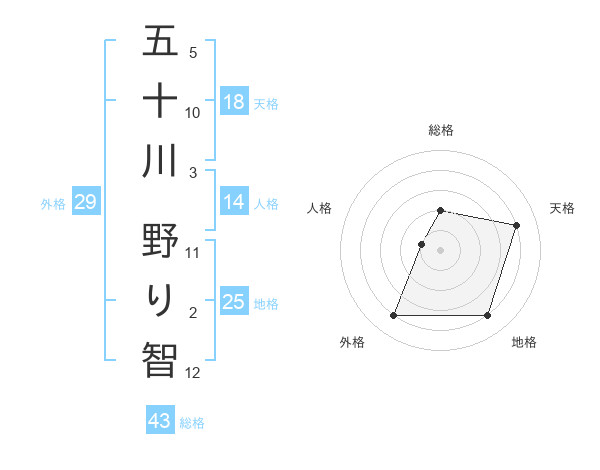 五十川 野り智さんを姓名の画数から五運を鑑定