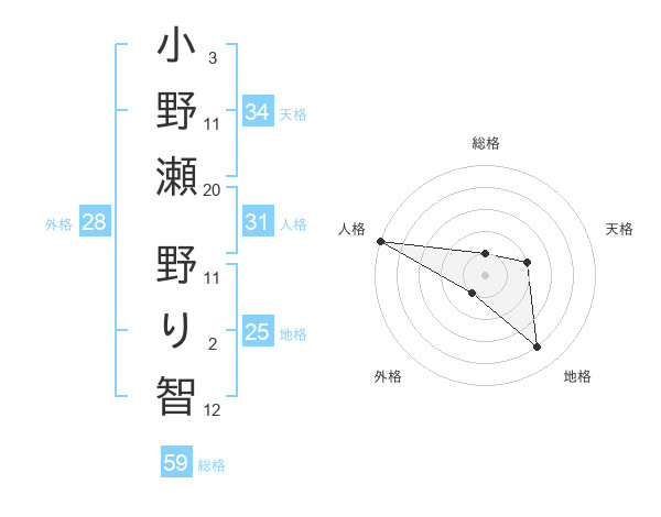 小野瀬 野り智さんを姓名の画数から五運を鑑定