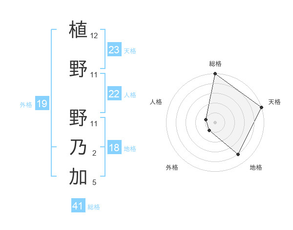 植野 野乃加さんを姓名の画数から五運を鑑定