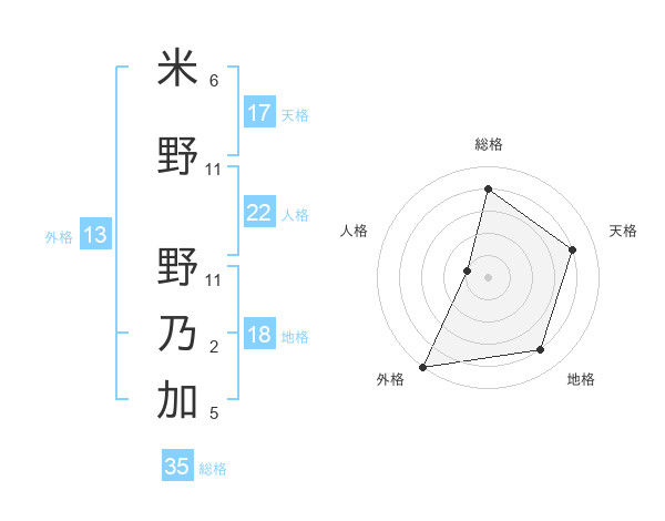 米野 野乃加さんを姓名の画数から五運を鑑定