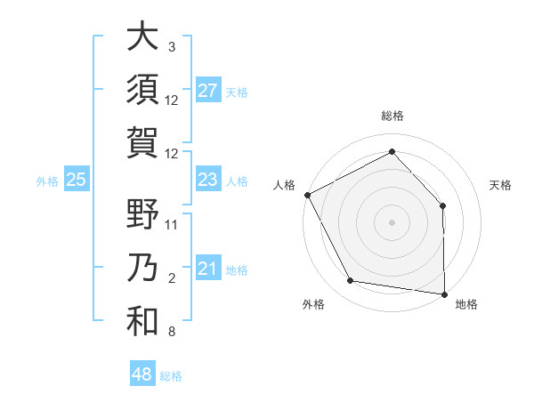 大須賀 野乃和さんの総格は48画の4点!