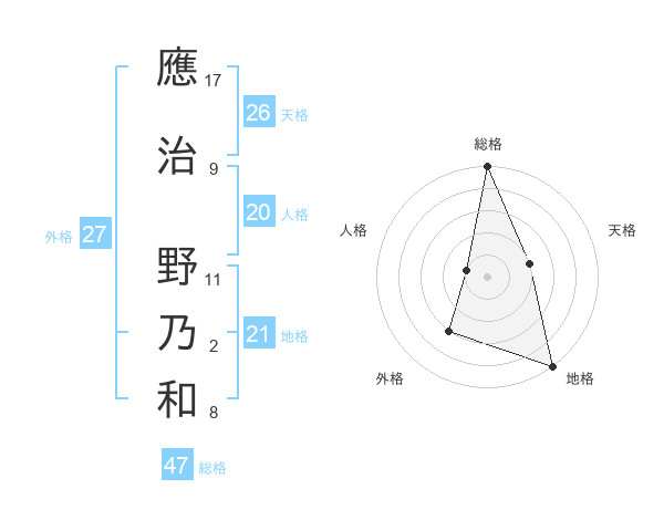 應治 野乃和さんを姓名の画数から五運を鑑定
