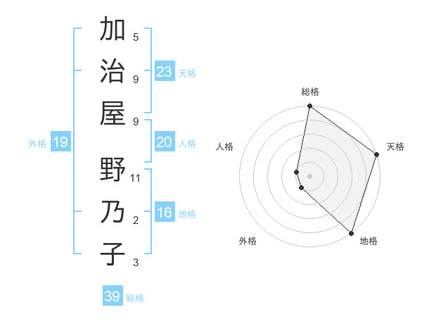 加治屋 野乃子さんを姓名の画数から五運を鑑定