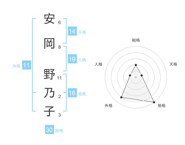 安岡 野乃子さんの総格は30画の2点!