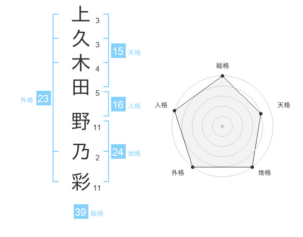 上久木田 野乃彩さんを姓名の画数から五運を鑑定