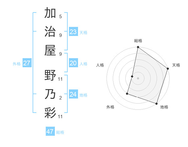 加治屋 野乃彩さんの総格は47画の5点!
