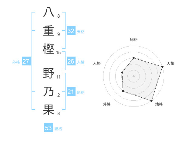 八重樫 野乃果さんを姓名の画数から五運を鑑定