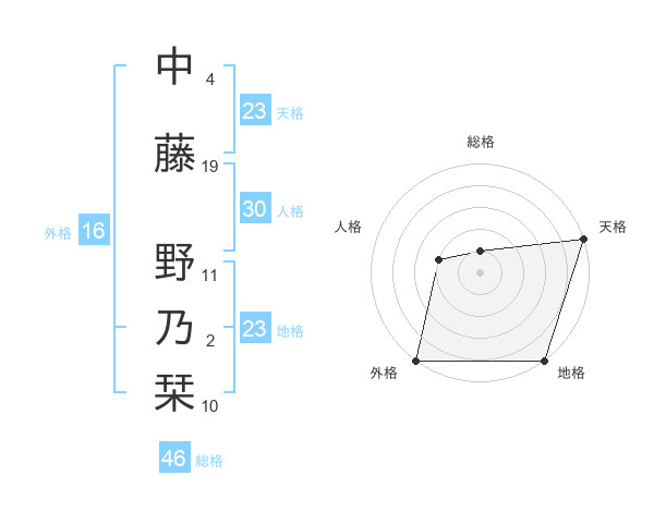 中藤 野乃栞さんの総格は46画の1点!