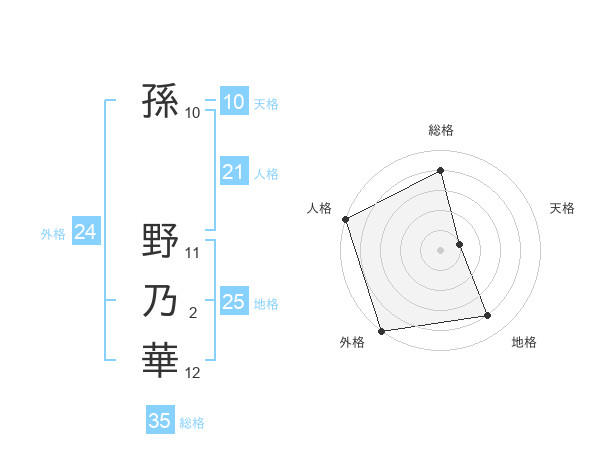 孫 野乃華さんを姓名の画数から五運を鑑定