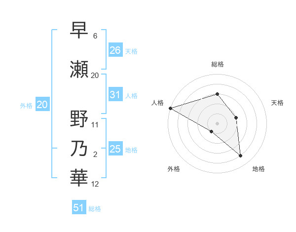 早瀬 野乃華さんの総格は51画の3点!